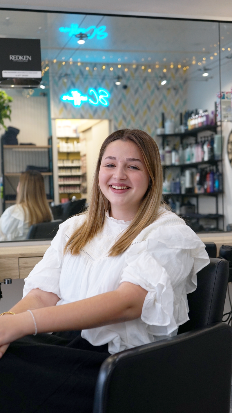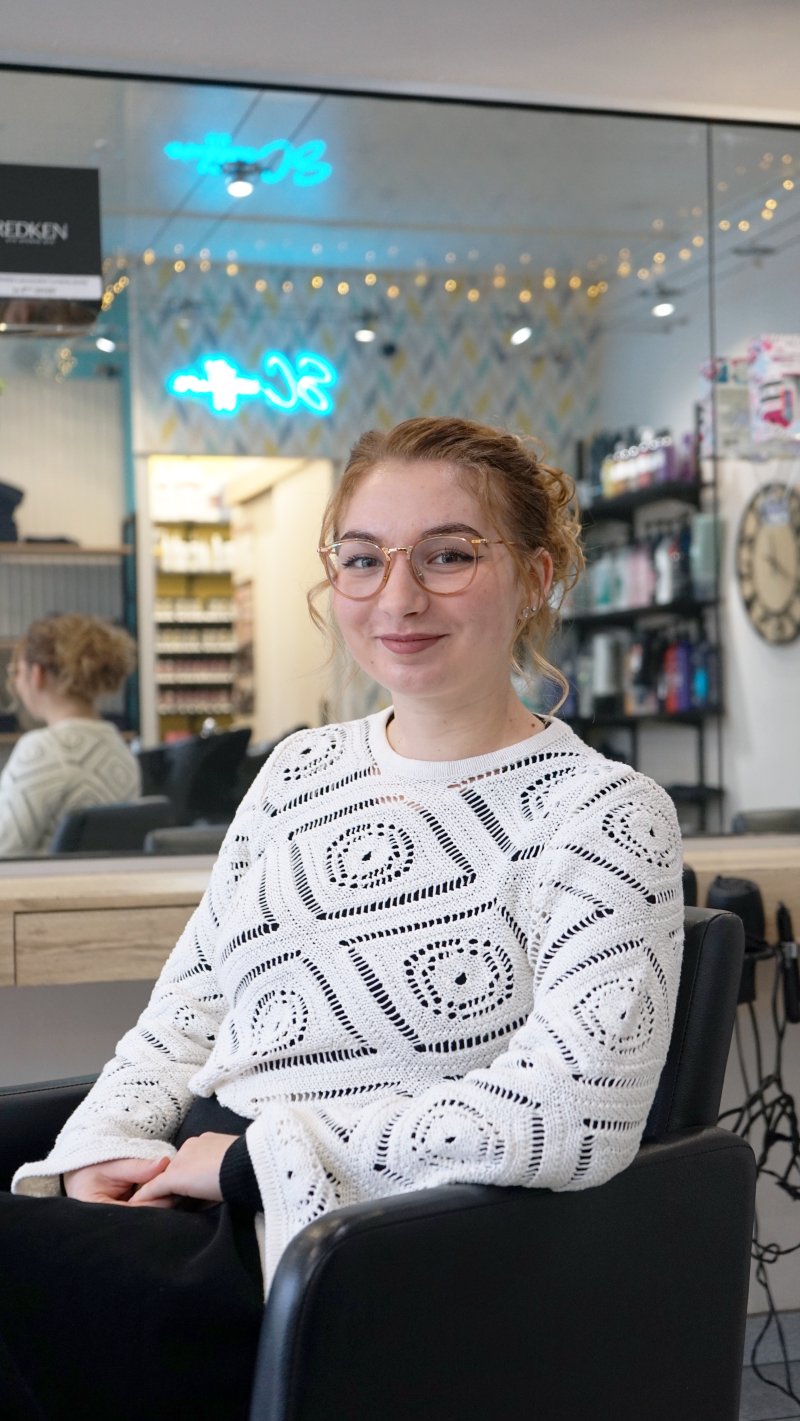 Manon, c’est la benjamine du salon. Elle prépare actuellement un CAP coiffure et apprend chaque jour au contact de l’équipe et des clients. Elle adore particulièrement les coupes homme, où elle commence déjà à affirmer son style, toujours avec le sourire et beaucoup de douceur. En dehors du salon, elle aime photographier les sports collectifs, une passion transmise par sa cousine. Ancienne footballeuse, elle garde le goût de l’esprit d’équipe et s’intègre naturellement dans l’ambiance conviviale et familiale du salon.